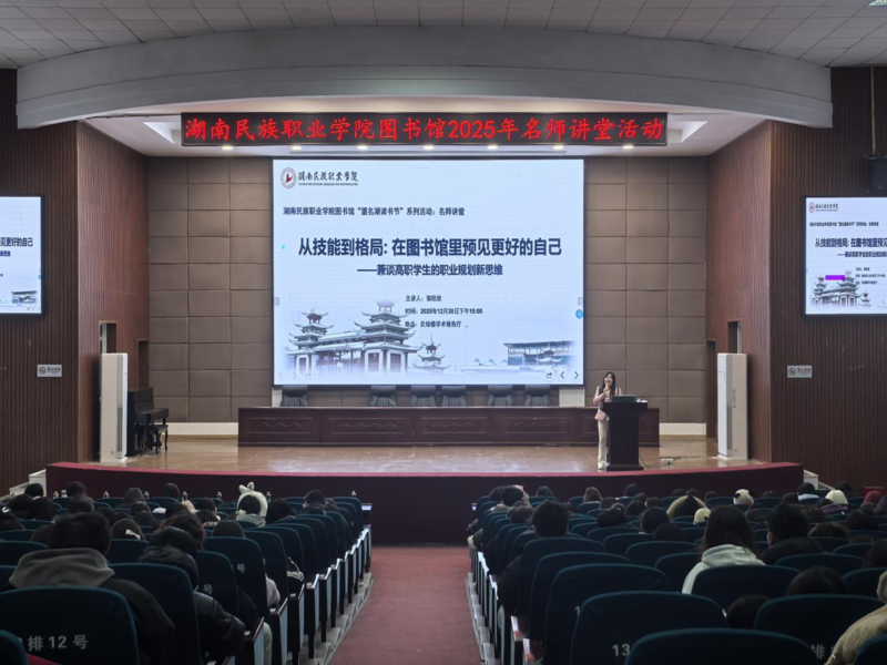 “半亩方塘一鉴开,天光云影共徘徊。”图书馆作为大学精神的栖息地,承载着育人启智、涵养格局的使命。2025年12月30日下午,炎培楼学术报告厅座无虚席,湖南民族职业学院副校长邹欣欣以“从技能到格局:在图书馆里预见更好的自己”为题,带来一场兼具文化底蕴与实践价值的名师分享,四百余名师生共赴这场书香与智慧的约会。
